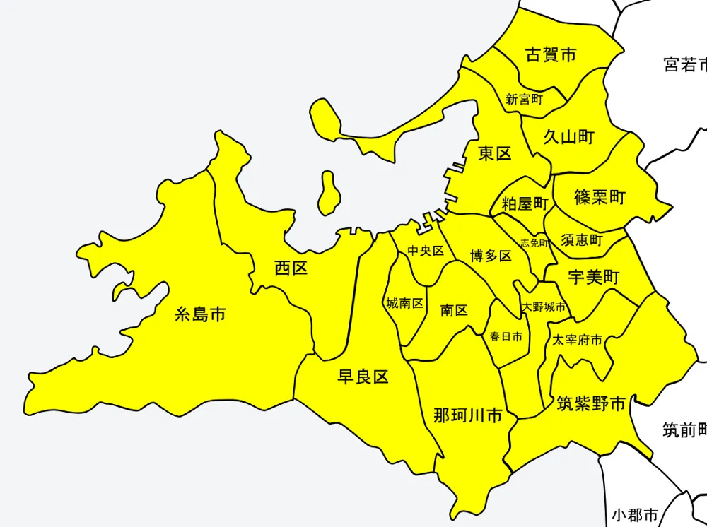 (福岡市全域、古賀市、糸島市、大野城市、春日市、筑紫野市、太宰府市、那珂川市、糟屋郡全域)