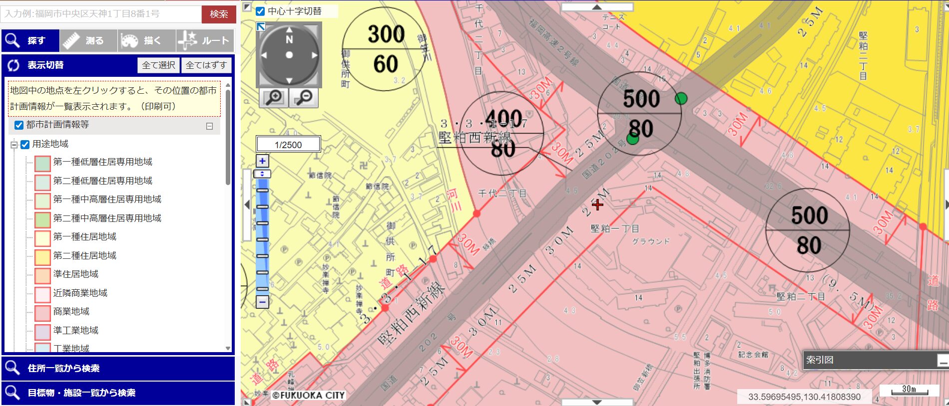 現在は、「福岡WEBまっぷ」を利用して用途地域を確認し、